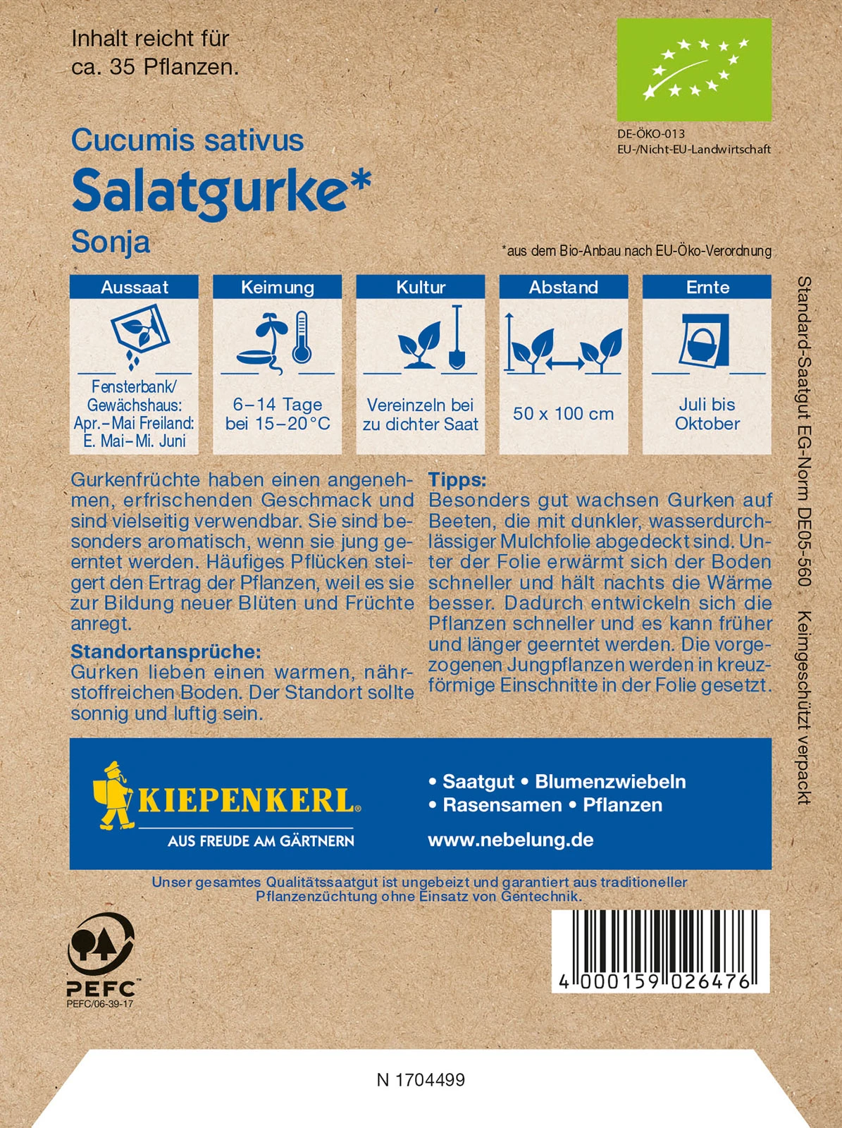 BIO Salatgurke Sonja | Salatgurkensamen Von Kiepenkerl [MHD 01/2024]