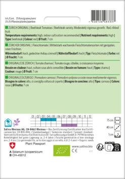 Längliche, grosse Pflaumentomate mit orange-pinker Marmorierung. Die Früchte schmecken süss und fruchtig, und sind durch ihr Farbspiel wunderbar im Salat. Sehr gesund und ertragreich.