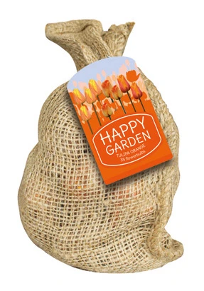 1 Jutebeutel mit 35 orangefarbenen Tulpen. Geeignet für das Beet, aber auch im Topf auf der Terrasse oder dem Balkon. Gut kombinierbar mit Muscari armeniacum oder blauen Hyazinthen.