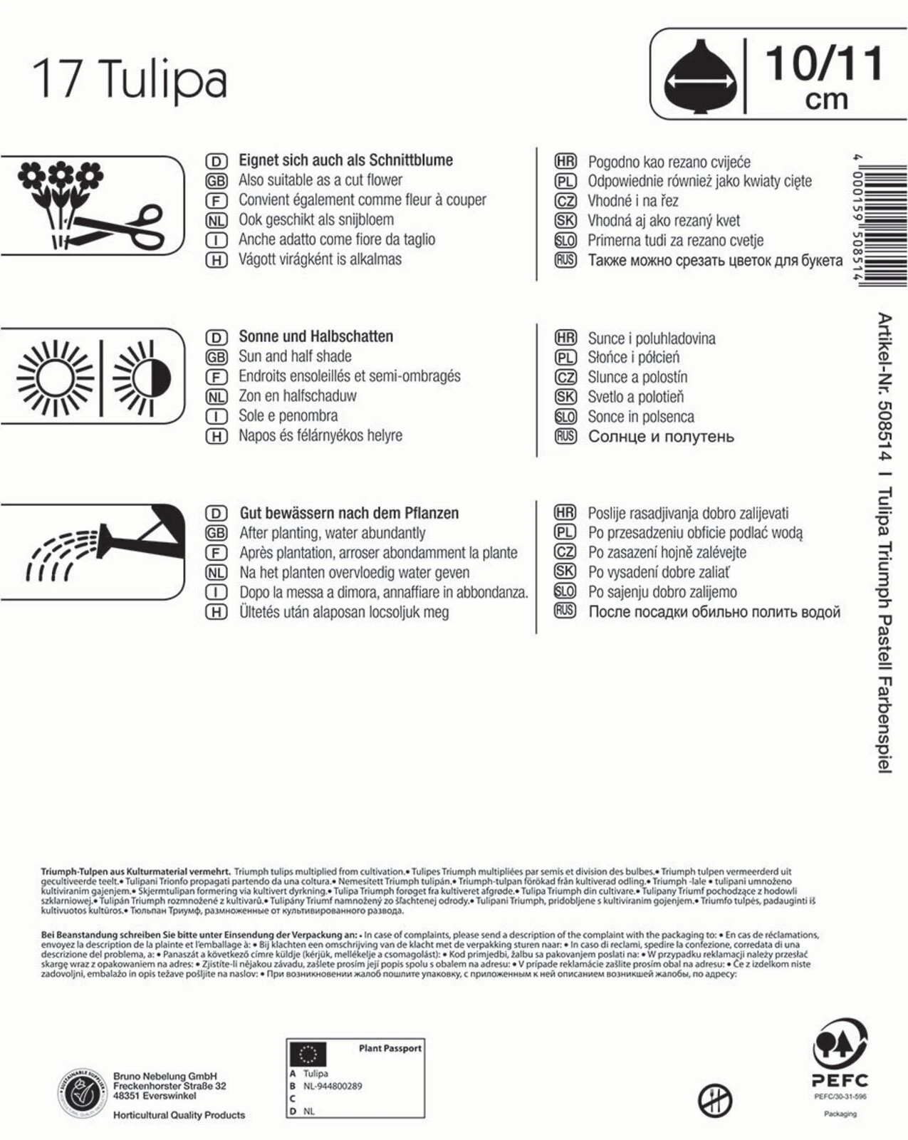 Für einen zarten Start in den Frühling sorgt das Mega-Pack „Triumph-Tulpe Pastell Farbenspiel“, denn es handelt sich um eine erlesene Auswahl an schönsten Tulpen in Pastellfarben. Dabei können die Tulpen sowohl einfarbig als auch zweifarbige Blüten haben. Sie werden bis zu 45 cm hoch und eignen sich auch hervorragend als Schnittblumen. Dadurch können Sie wunderschöne Sträuße kreieren. Von April bis Mai werden diese Tulpen Sie erfreuen.