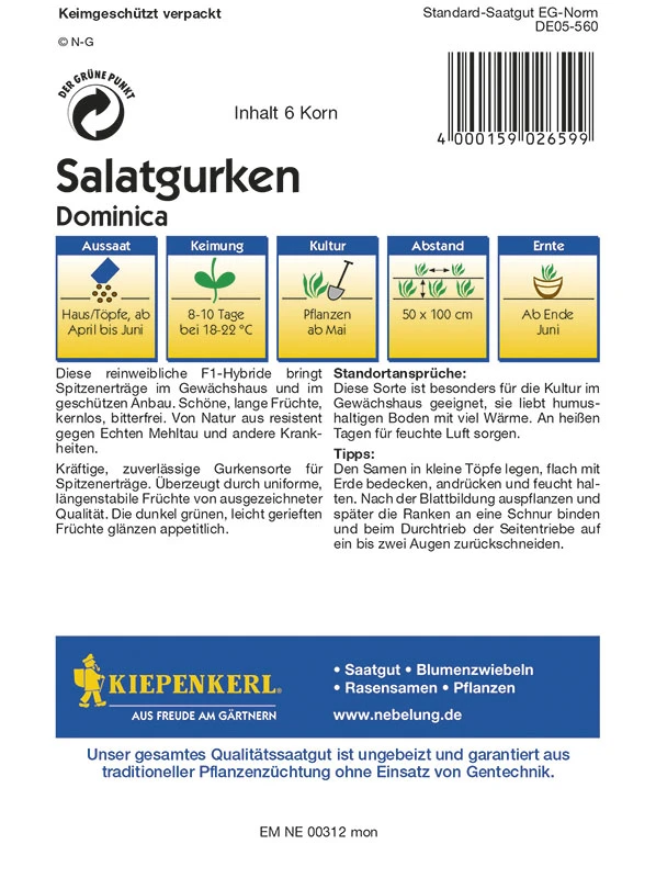 Diese F1-Hybride bringt Spitzenerträge im Gewächshaus und Frühbeet. Schöne, lange Früchte, kernlos, bitterfrei.