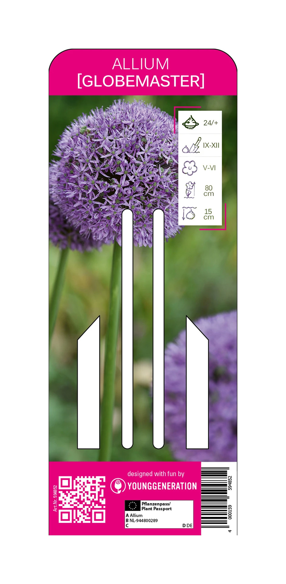 Eine opulente Besonderheit sind die mächtigen asternblauen Blütenbälle des Riesenlauchs Globemaster mit 20-25 cm Durchmesser. Die imposanten violettroten Blütenstände zeigen lange Farbe. Die Blütenstiele können blühend und getrocknet für Sträuße und Gestecke verwendet werden. Besonders große Zwiebelgröße in ansprechender Pappmanschette zum Verschenken oder Selbstpflanzen.