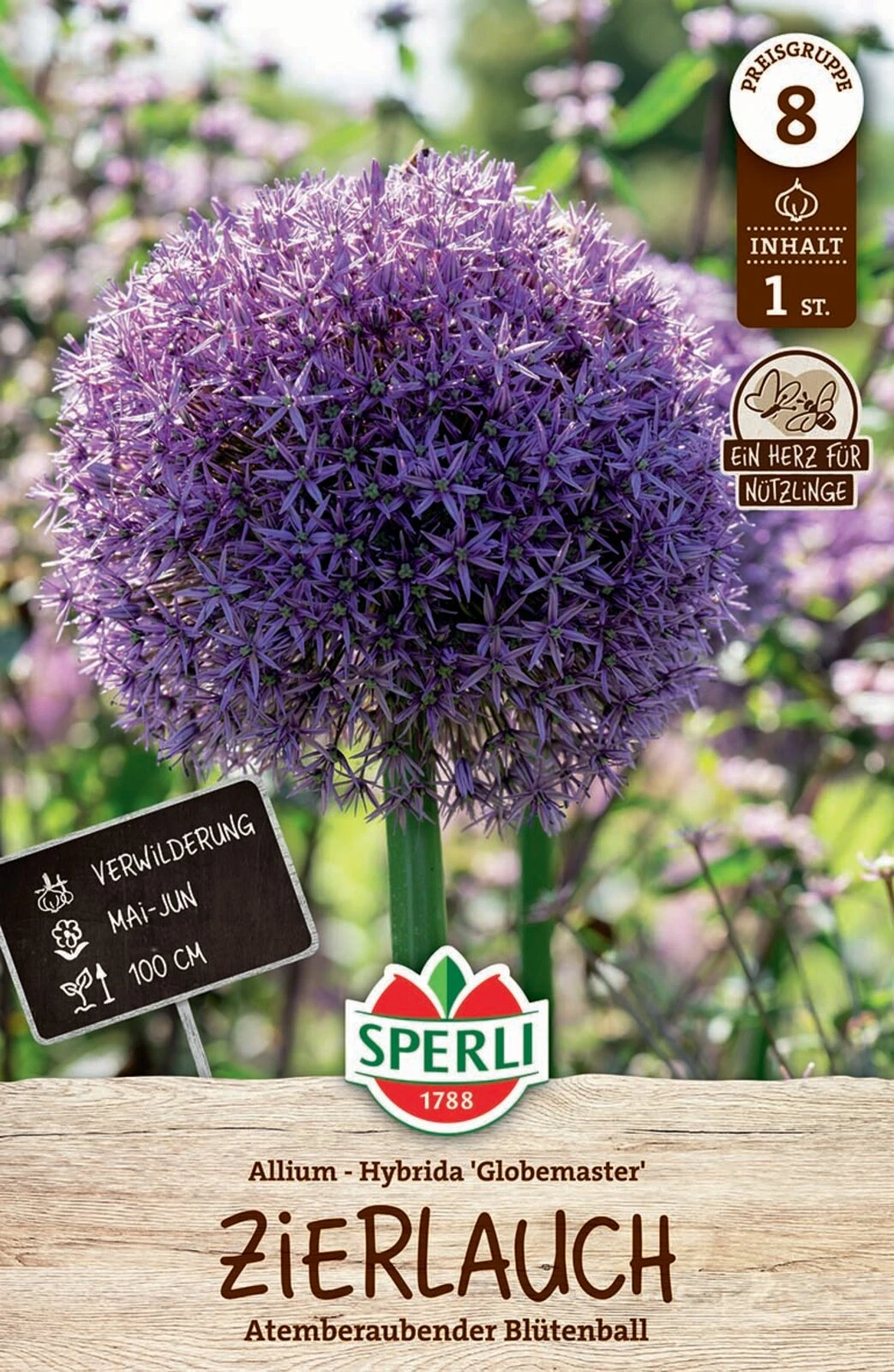 Dieser Riesenlauch bildet asternblaue paukenschlägerähnliche Blütenkugeln von 20 – 25cm Durchmesser aus, die sich aus einer Vielzahl von sternförmigen Einzelblüten zusammensetzen.Haltbare Schnitt – und Trockenblumen.Trocken und luftig lagern.