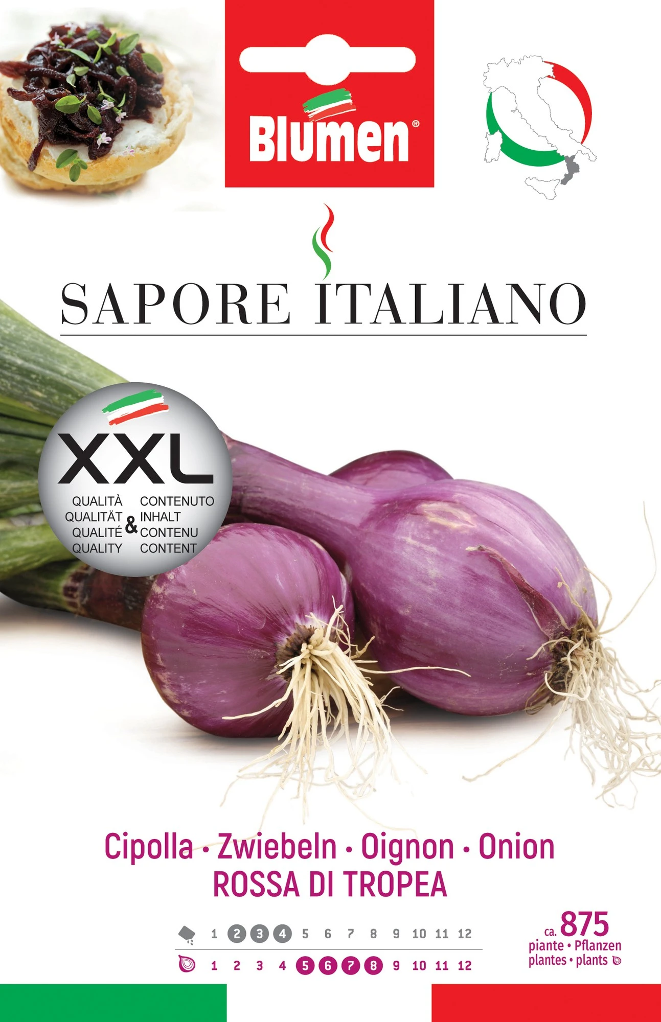 Sehr früh reifende Sorte, rund, sehr mild, für die Saat im Juli, August und September für die Ernte von Frühzwiebeln im Herbst oder Knollenzwiebeln im Frühling oder Sommer. Kurze Haltbarkeit.